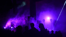Colored lights illuminate the stage as fans watch Portugal. The Man, as they co-headlined with Grouplove during a sold-out show at the Red Butte Garden Amphitheatre in Salt Lake City, Tuesday, August 19, 2014.