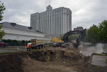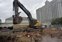 Demolition continues on the old Flower Patch on State Street Tuesday August 19, 2014. Grand America Hotels & Resorts owns the land.