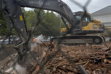 Demolition continues on the old Flower Patch on State Street Tuesday August 19, 2014. Gra