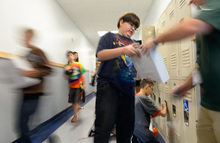 Taylor Johnson, who attended the first day at the Pleasant Grove campus, is excited about her new school, especially because she can get special-ed services and be in the gifted-and-talented program at the same time.