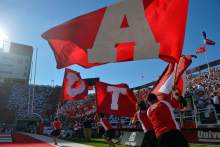 Utah cheerleaders celebrate a touchdown during the first half of the game against Idaho St