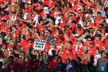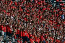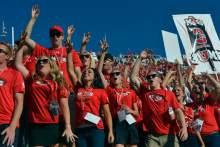 Members of the MUSS cheer during the first half of the game against Idaho State Bengals at