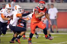 Utah Utes Nate Orchard (8) runs past Idaho State Bengals defensive back Tavonte Jackson (