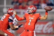 Utah Utes quarterback Kendal Thompson (1) throws the ball during the second half of the ga