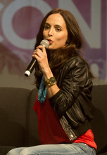 Raised in the Mormon faith, she often visits Utah to see relatives but she made her first appearance at Salt Lake Comic Con Friday. She invited her mother, Judy Dushku, to share the couch on stage and help field questions.