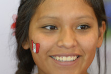 Stella Kantzman had the Peruvian flag painted on her face at the 3rd annual Peru Fest, July 25, 2014 at the Utah Multicultural Center.