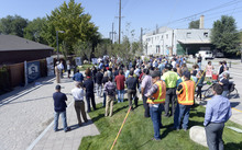 People gather for the grand opening of Utah's first ever multi-modal recreation corridor September 19 near the 600 East South S-Line crossing.