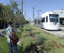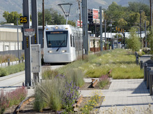 S-Line train passes by Utah's first ever multi-modal recreation corridor September 19 near the 600 East South S-Line crossing.