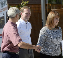 Salt Lake City Mayor Ralph Becker, left, Salt Lake County Mayor Ben McAdams, and South Salt
