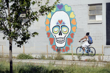 Bicyclist rides path by Utah's first ever multi-modal recreation corridor September 19 near the 600 East South S-Line crossing.