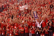 With a buck-twenty remaining on the clock, the Cougars move the ball on three short passes to their own 34. On fourth-and-1, Hill runs right, then left, then right, then left, serpentining 66 yards down the field, to the Ute 30, the 20, the 15, the 10 … and, at the 5, he hurdles over Eric Rowe and into the end zone for the game-winning touchdown as time runs out.
