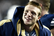 He also torches the BYU secondary on bad coverages, hitting Anderson, Scott and Westlee Tonga, moving to the Cougars 12. The BYU D can't put any pressure on Wilson without blitzing him, and when it does, he takes full advantage by way of a dart into the open arms of Scott in the back of the end zone. Utah 27, BYU 21.