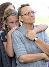 As Caron addressed the media, family members stood behind him on the grass of the Springville Art Museum, holding hands and each other.