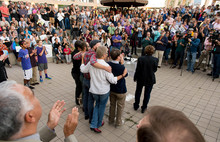 But while couples cheered and cried, plaintiffs in the now-closed case of Kitchen v. Herbert roused the crowd to its feet.