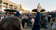 "Do you feel that?" Marina Gomberg asked hundreds of jubilant supporters of same-sex marriage who gathered at the Salt Lake City Library on Monday night.