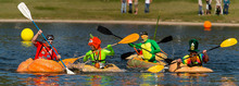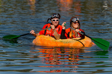 Racers at the 4th Annual Ginormous Pumpkin Regatta in Sugar House Park, Salt Lake City, Sat