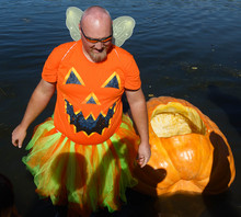 Pumpkin fairy Toby Peterson at the 4th Annual Ginormous Pumpkin Regatta in Sugar House Park, Salt Lake City, Saturday October 18, 2014.