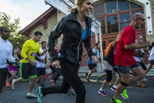 Zombie Emily Butler chases human Kristy Deans during the Dawn of the Running Dead 5K race