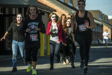 Zombies Faith Hilton, Emily Butler, Ruth Evans and Lucy Hill chase humans Kristy Deans, le