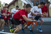 Zombies Tyler Lloyd, of South Jordan, and Cameron Romine, of Eagle Mountain, run during th