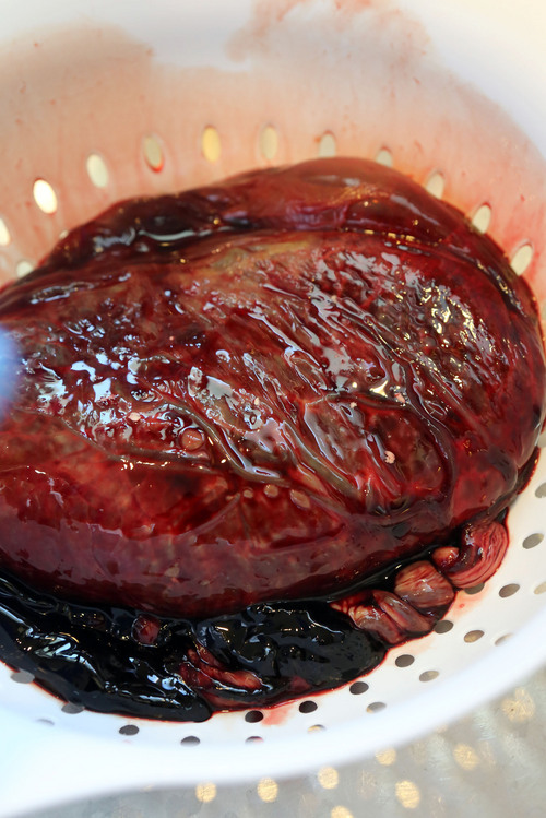 She rinses each placenta to remove blood clots and meconium, examines it for anomalies and steams it for 10 to 12 minutes each side.