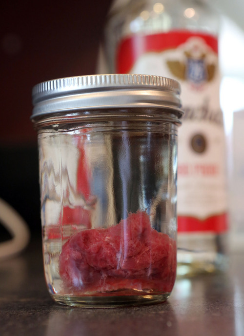 The organ, an unusually large specimen, has been steaming atop a pot of boiling water, ginger and lemon and has turned an unappetizing gray. But soon the "mutant hamburger," as Curtis describes it, will be sliced, dehydrated, ground into a powder and capsulized for … you guessed it, human consumption.