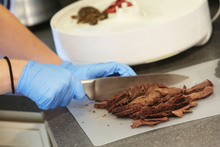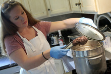 All equipment and work surfaces are sanitized with a bleach solution. "I wear a fresh pair of gloves for every stage of preparation," she said.