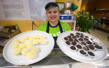 Brigadeiro • This simple bonbon, made with sweetened condensed milk and cocoa powder, was named after Brigadier Eduardo Gomes, a famous Air Force commander from the 1940s. "So the ladies who supported the presidential campaign started making the candy" to raise funds, Marcela Ferrinha, owner of The Sweet Brigadier, explained on her website. Ferrinha's online bakery sells a twist on the traditional brigadeiro by wrapping it in a Belgium chocolate shell.