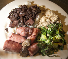 Feijoada • This rich pork and black-bean stew, served over white rice, is considered the national dish of Brazil. It is usually accompanied by a side of collard greens, linguiça sausages and farofa, a seasoned and toasted ground yuca that soaks up the sauce. In Brazilian homes, the stew is made with whatever meat is available, said Nick Utrera, a manager at the Rodizio Grill in Trolley Square in Salt Lake City, whose father is Brazilian. Pork shoulder or pork loin is the most common protein, but sometimes pot roast or depending on the region chicken or fish is added, he said.