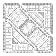 Mouzon answered his own question, proposing a ring of buildings around the blocks with agriculture in the center. The blocks could have as many as 12 pathways leading into them.